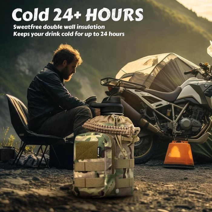 24 Hrs Hot, 48 Hrs Cold : Tactical Insulated Water Bottle features double-layered 304 stainless steel construction, keeping drinks hot for 24 hours and cold for 53 hours. Stay hydrated on-the-go and conquer outdoor adventures with ease